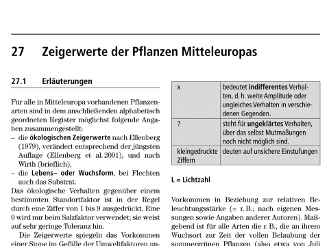 Ellenberg H. et al., 2001: Zeigerwerte von Pflanzen in Mitteleuropa. 3. Aufl. Goltze, Göttingen. 262 S. Vgl. auch: www.utb-shop.de/downloads/dl/file/id/27/zusatzkapitel_zeigerwerte_der_pf... |
