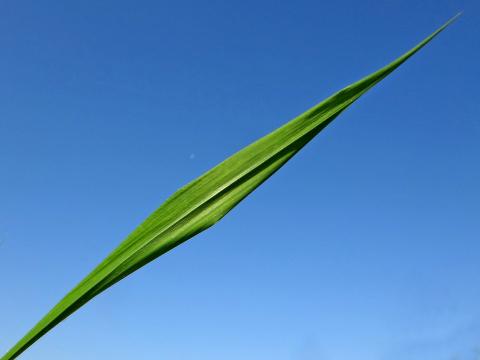 Una foglia ensiforme-lanceolata presenta la forma tipica delle foglie del Paleo comune (Brachypodium pinnatum): con forma marcatamente lanceolata, ovvero con larghezza massima nel punto medio della lamina. |